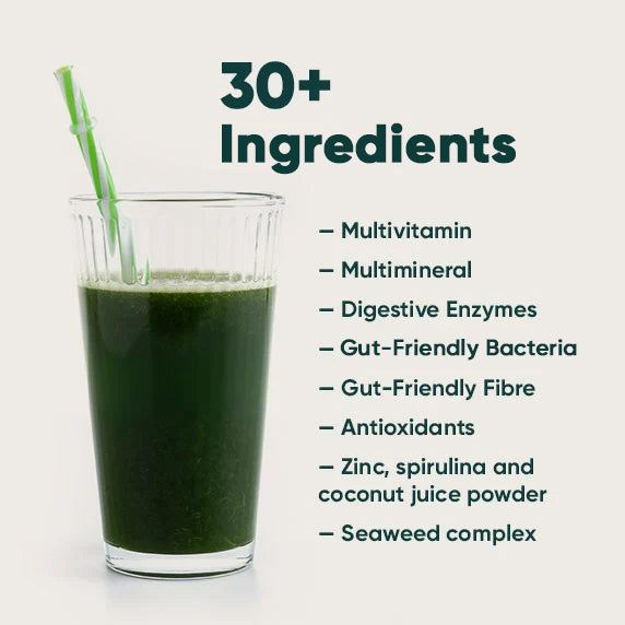 ✔️Premium ingredients like our Fruit and vegetable Complex, Seaweed complex, a blend of Digestive Enzymes and Extra Strength Live Bacteria